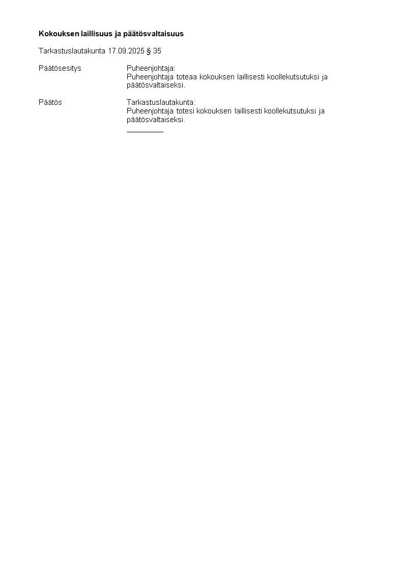 Pöytäkirja 17.09.2025/Pykälä 35