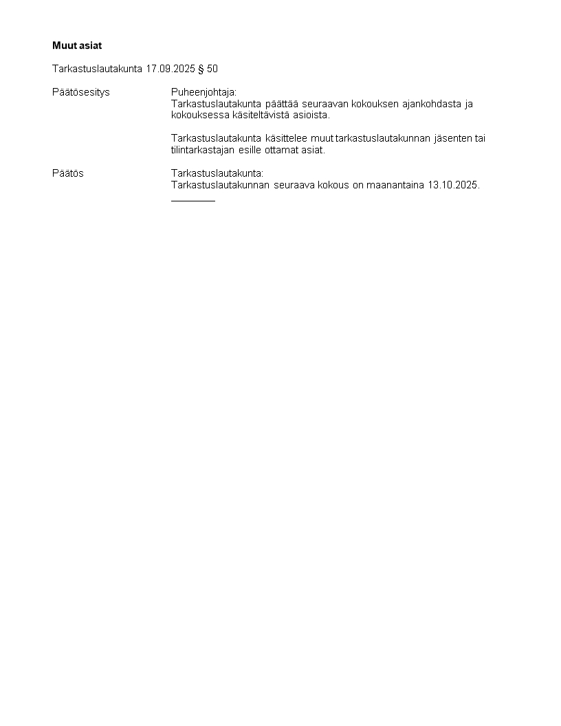Pöytäkirja 17.09.2025/Pykälä 50